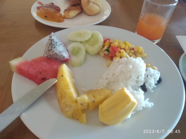 أما الشيء الذي يمكن ان يفتح شهية المرء فهي الفواكه التي لا اتذكر اسماءها لتنوعها ومذاقاتها المختلفة وكنت شديد الحرص على تذوق كل جديد وترك المألوف عندي استكشافا لمذاقات فواكههم, وما تهبه الطبيعة التايلاندية الغنية بالمزارع.