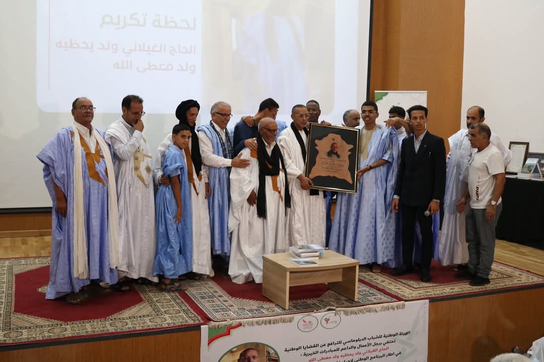 ختاما، شهد الحفل تقديم تذكار للحاج الغيلاني ولد يحظيه ولد معطى الله، كشخصية وطنية بصمت بعطاء نحو مكانة ريادية في عالم الأعمال وفعل الخير.